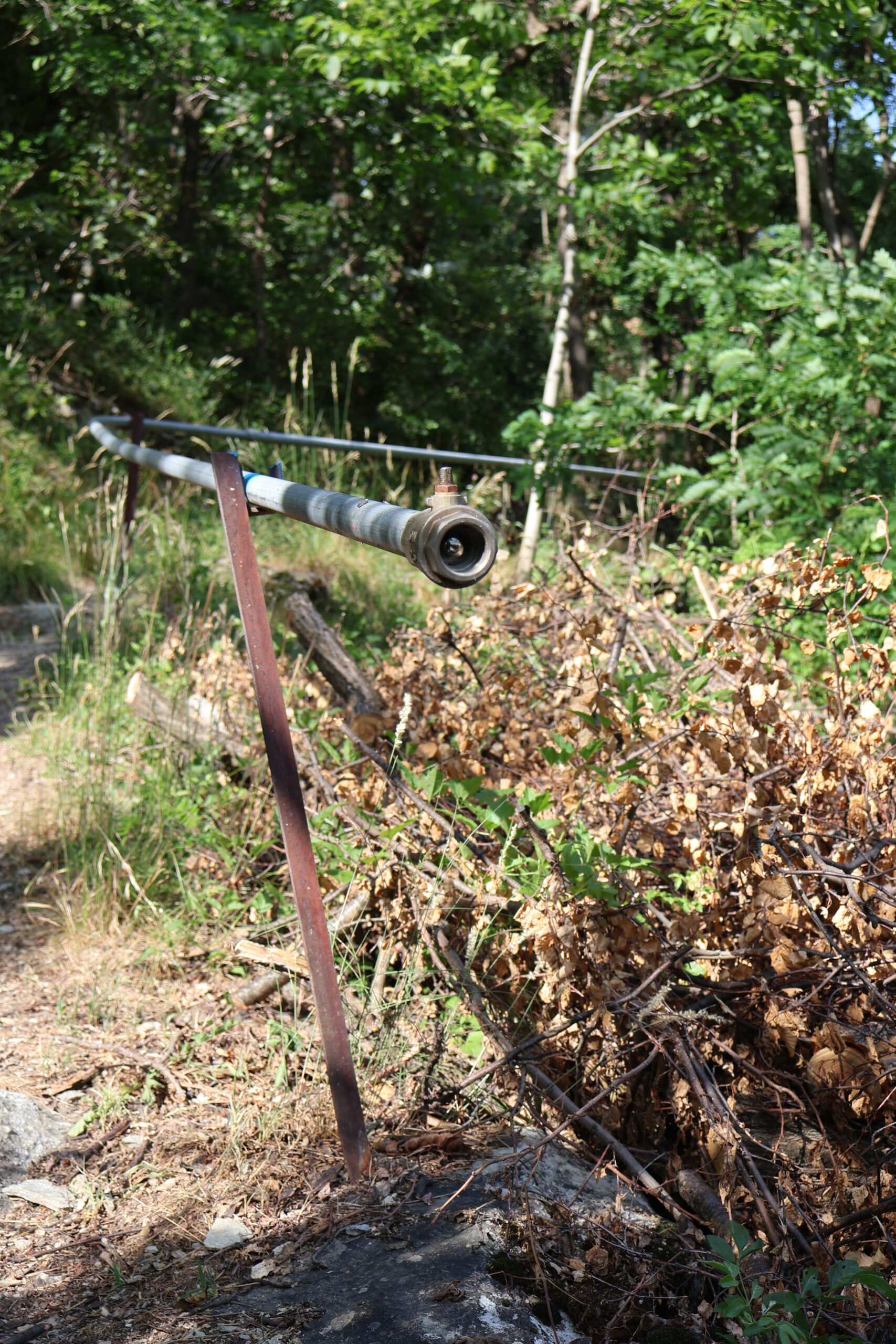 Wie weit wir gehen, um die Schutzfunktionen unserer Wälder zu erhalten, erfahre ich nochmals ein paar Kilometer südlich. Der Wald oberhalb der Lötschberg-Südrampe, einer wichtigen Bahnstrecke, ist von Bewässerungsrohren durchzogen. Durch die Bewässerung soll verhindert werden, dass die Bäume absterben und die millionenschwere Bahninfrastruktur schutzlos zurückbleibt.