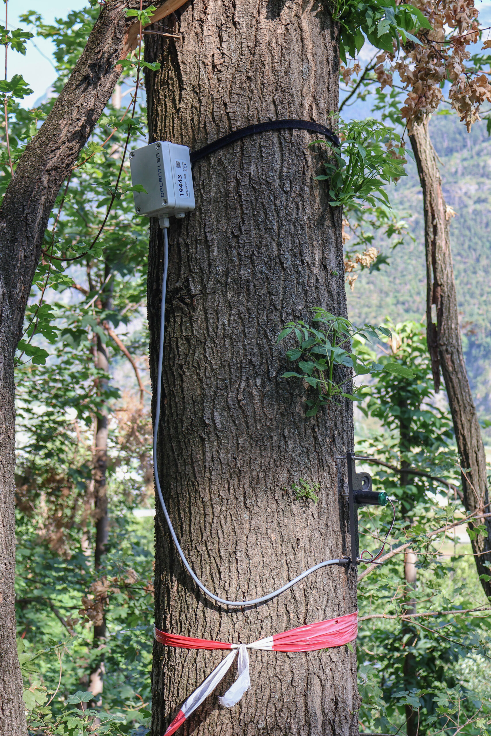 Um die Gesundheit der verbleibenden Bäume zu überwachen, wurden zahlreiche Bäume mit Sensoren ausgestattet. Es ist ein surrealer Anblick und kaum eine langfristige Lösung. Und doch stehen die Bewässerungsrohre und Sensoren exemplarisch für den enormen Aufwand, der auf uns zukommt, wenn wir uns nicht mehr auf die Schutzleistungen der Wälder verlassen können.